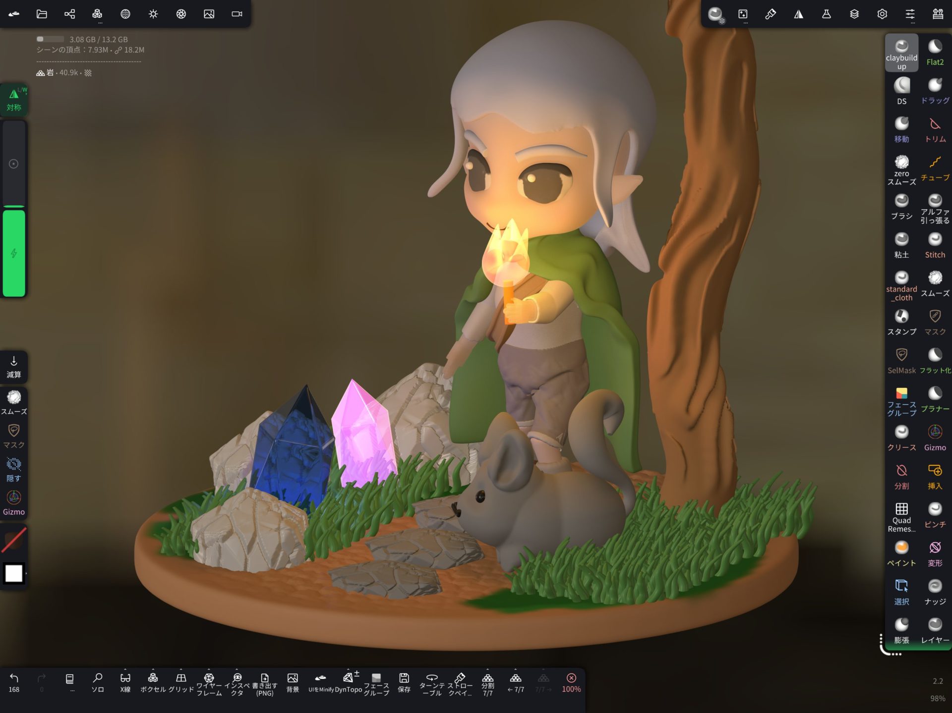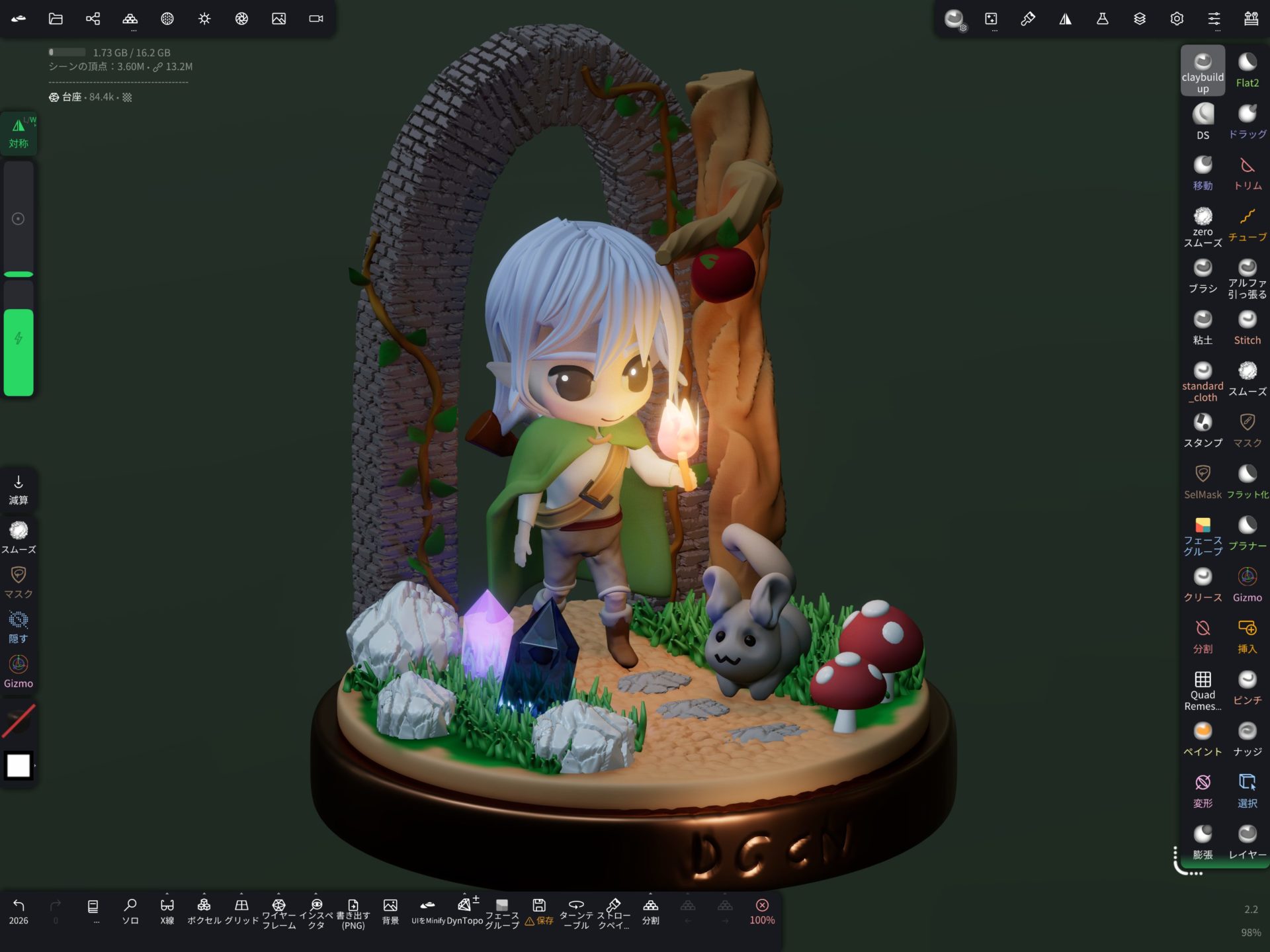 ・今回の作例は「ローポリの形状を読み込む」「マルチレゾリューションで解像度を上げて、ついでに角をとる」という戦法をとっている。